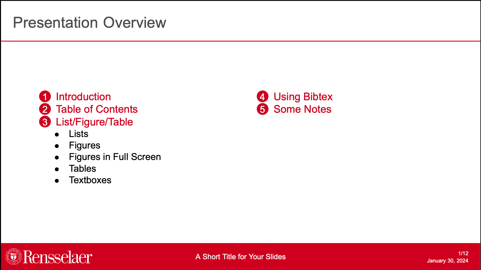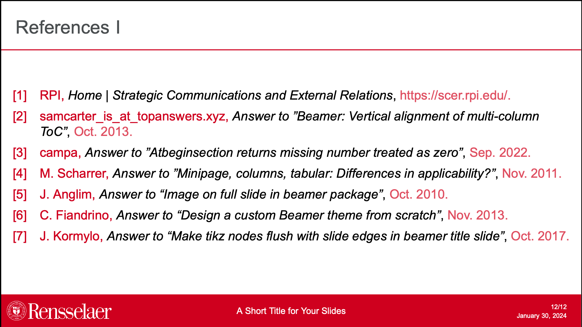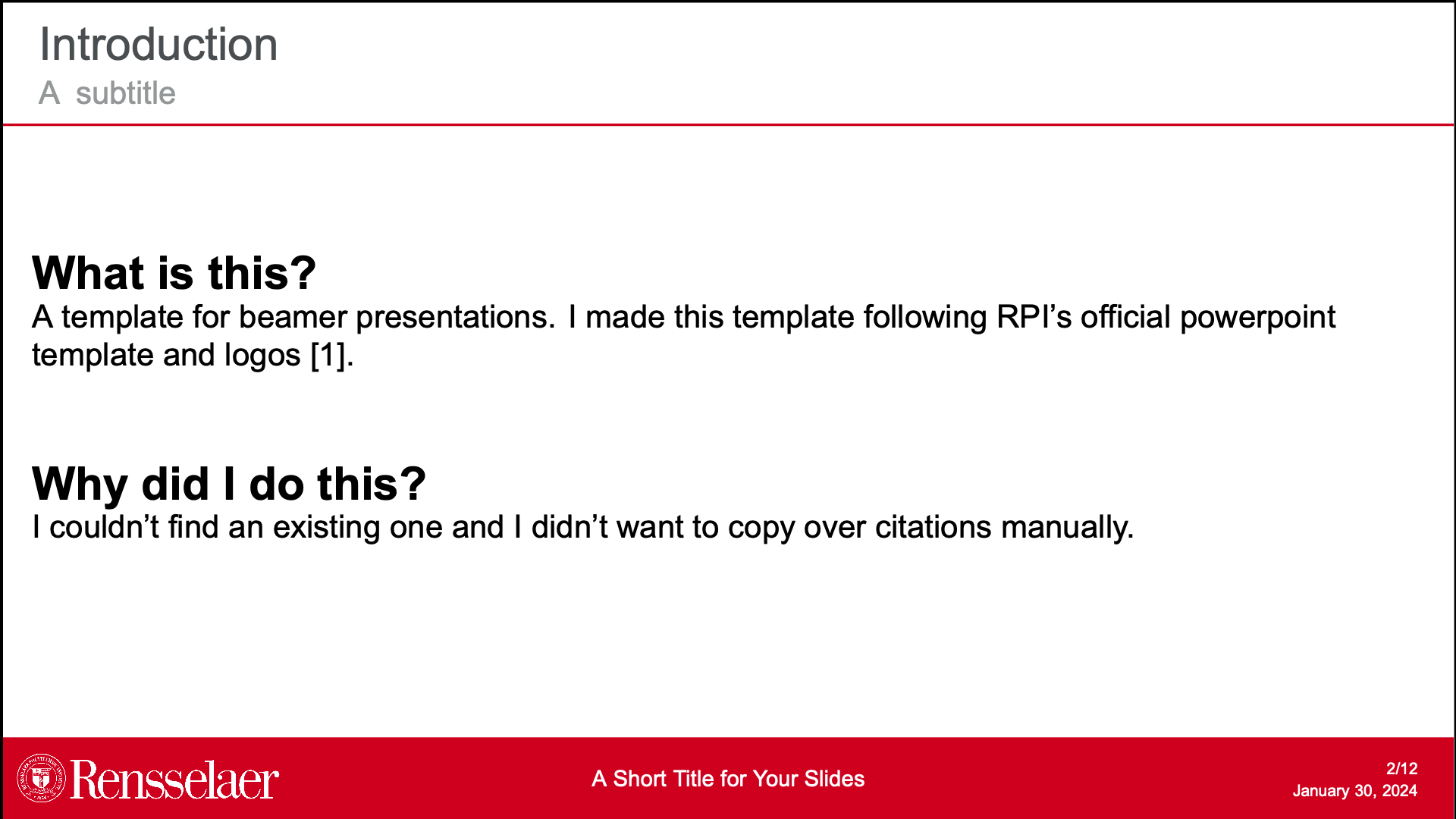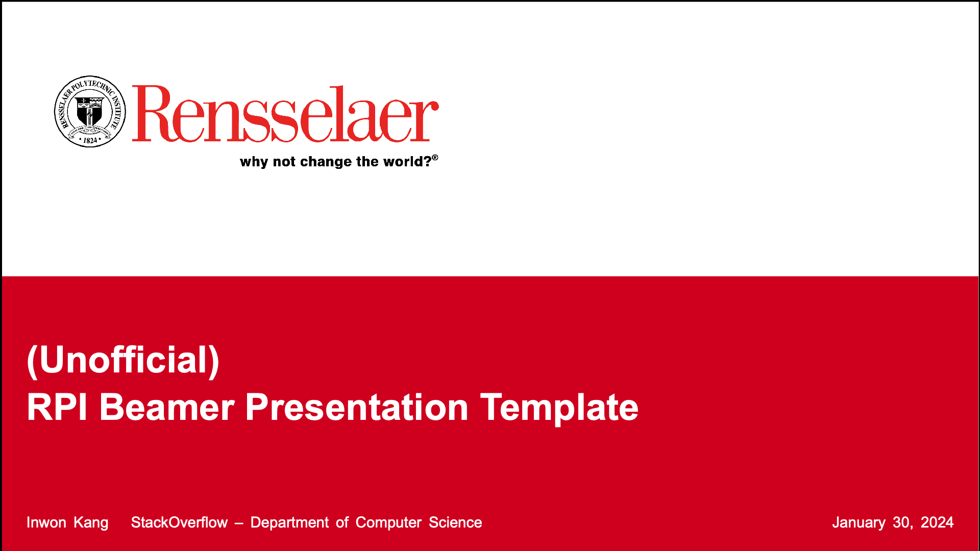 A beamer presentation template I made using RPI colors and official logo.