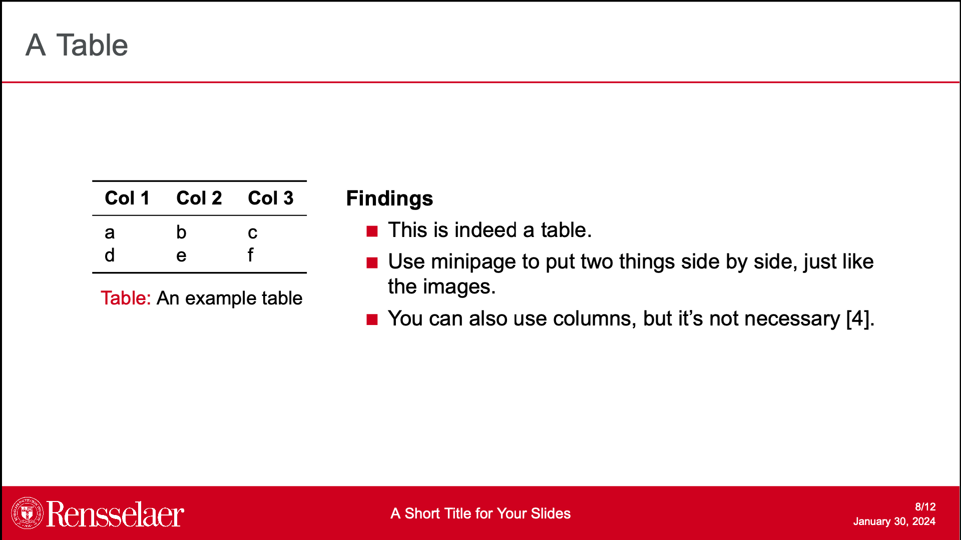 Unofficial RPI presentation template for beamer