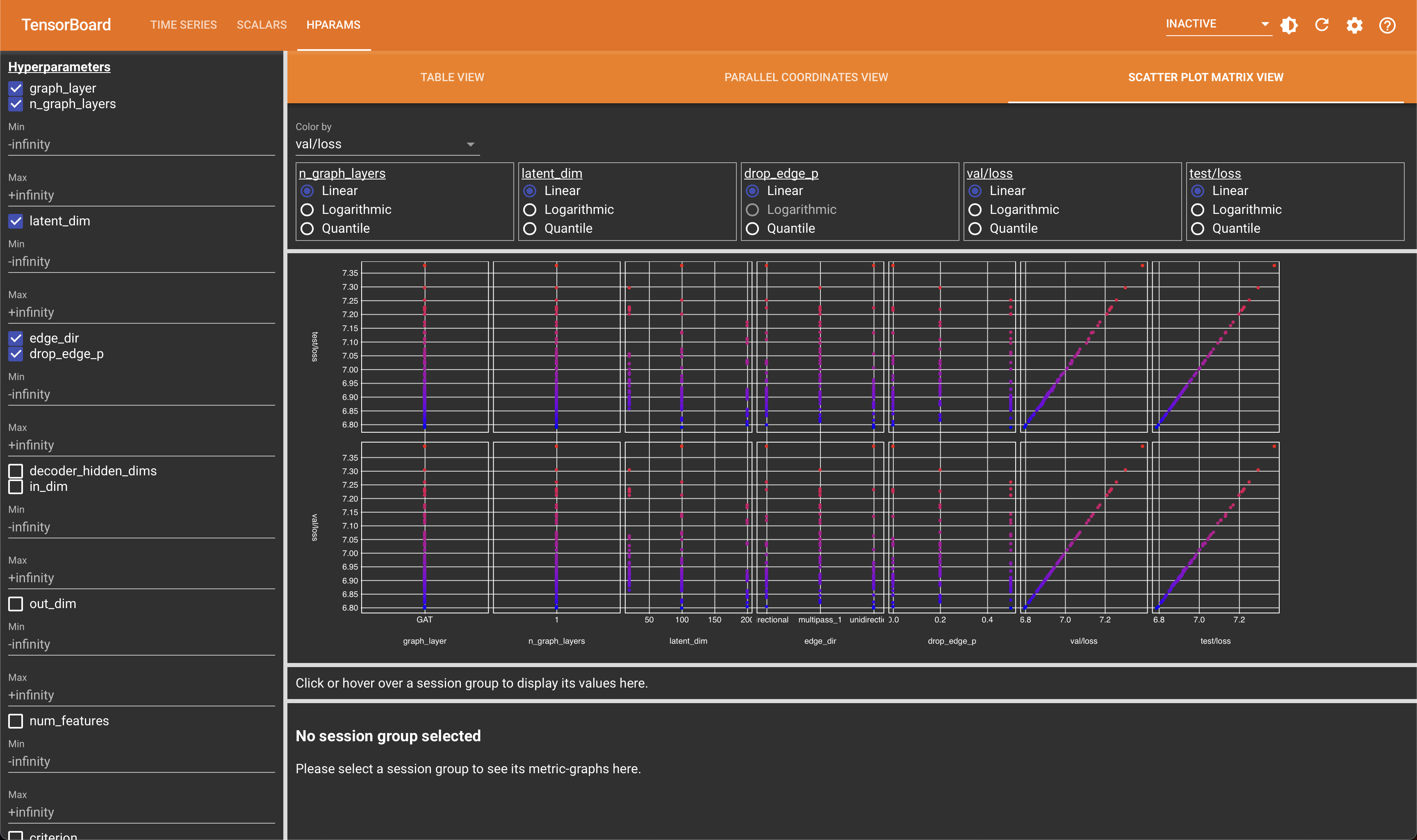 This is useful enough when you just want to look at your loss curve or check various metric scores. However, tensorboard can do much more. On the top bar of the dashboard, there is a tab called 'HPARAMS'. This is where you can compare the results of models with varying hyperparameters, allowing you to pick the best model.